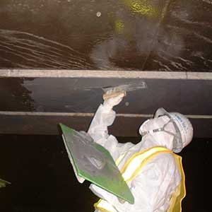 橋梁の強度を上げるために橋の裏側に炭素繊維を全体に塗る作業です。